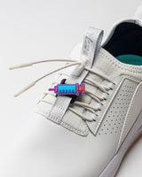 - Slide the Clovey™’s bottom buckle onto the sneaker’s center ribbon.
